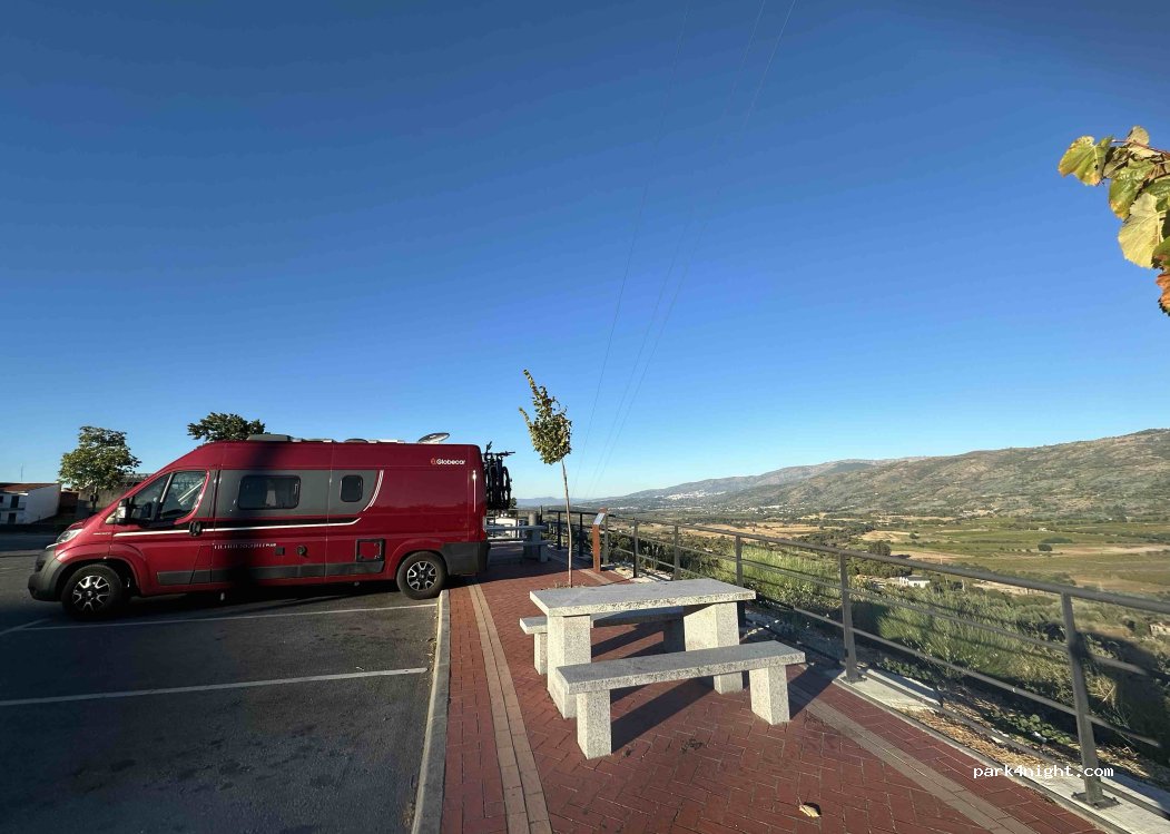 So gut wie gerade Plätze, die Aussicht märchenhaft! Wir haben eine Nacht sehr ruhig geschlafen, nach dem wir vom offiziellen Stellplatz unten wegen Lärm geflüchtet sind. Belmonte hat sehr schönes Freibad, bis um 20 Uhr geöffnet:)
