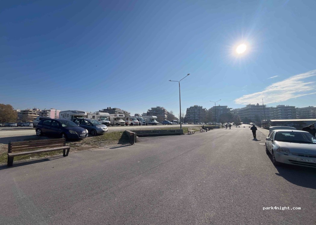 Parking à 4 km du centre à pied très agréable. Je recommande cet arrêt pour une ou plusieurs nuits pour visiter Thessalonique