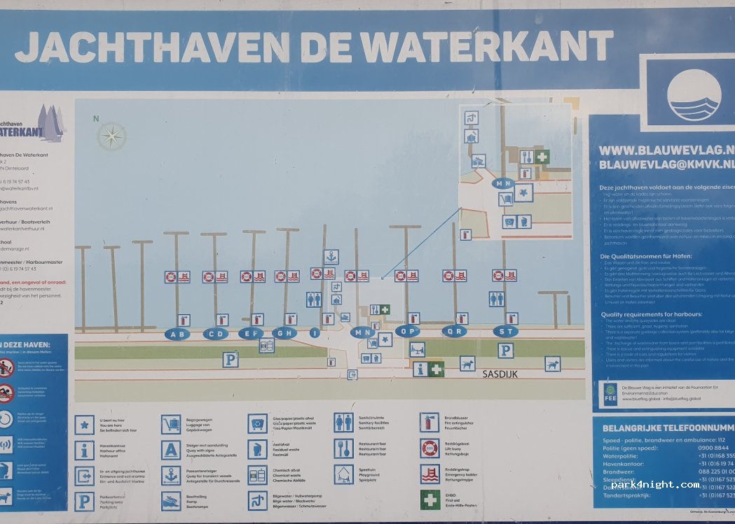 Puoi pernottare qualche notte nel bellissimo parcheggio di Jachthaven Waterkant. Proprio sull'acqua nel mezzo del porto. L'accesso WIFI è disponibile, strutture decenti e pulite. E anche un ristorante in loco!