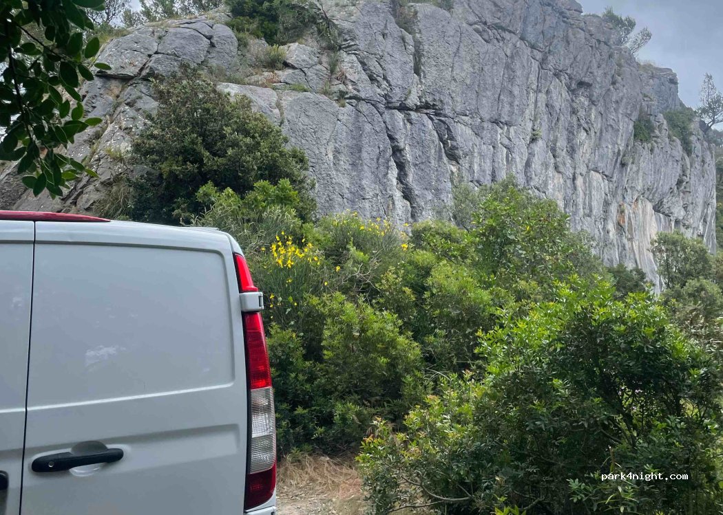 Magnifique endroit, en fait parking pour un site d'escalade juste derrière. On a garé un peu plus loin dans le sens unique, très belle nuit au calme ! Il y avait un van déjà garé sur la place avec la table plus haut