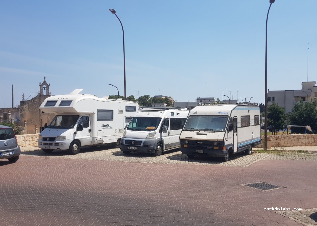 Parcheggio gratuito bello e pulito con un piccolo parco giochi. Un po' rumoroso perché frequentato da bambini di giorno e da ragazzi la sera. Vicino all'uscita, ai bagni puliti e alla Conad ci sono tre posti in piano di dimensioni ottime per i camper: peccato che 2 sono occupati da camper di persone che li usano come rimessaggio proprio. Peccato per il menefreghismo!!!. e per Martina Franca