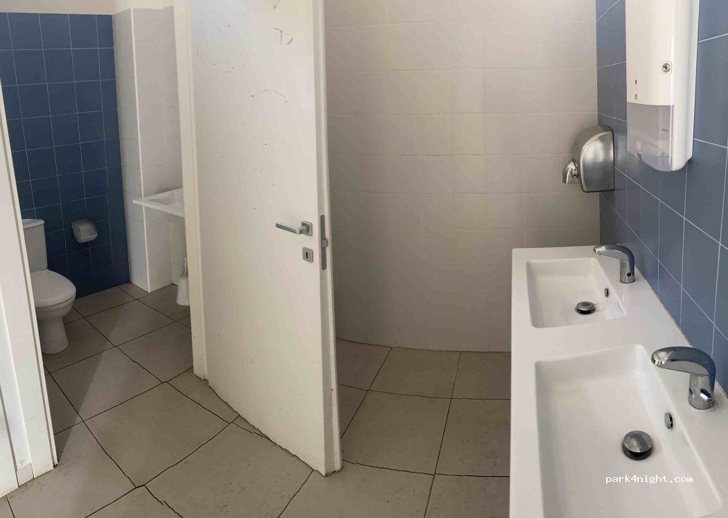 nous avons dormi deux nuits très calme toilettes publiques à dispo pas très propre ville à 10 minutes à pied