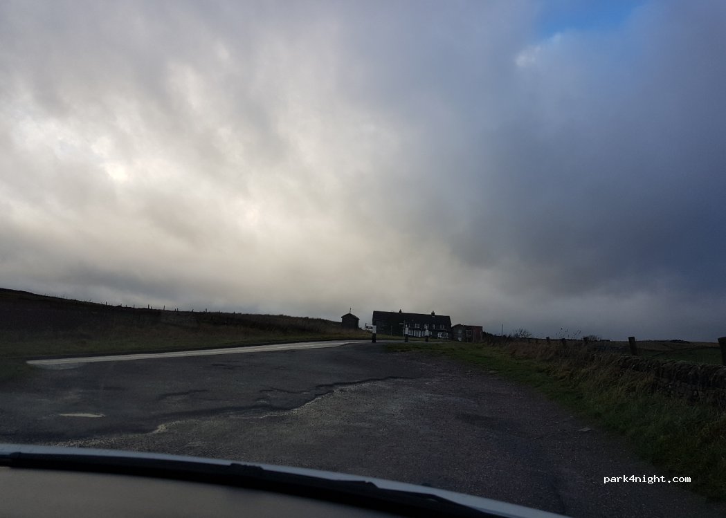 Flash- le plus haut village du Royaume-Uni. parking juste à côté du café / plats à emporter et en face du pub Knights table. Hors de l'A53 très fréquentée, c'est pratique pour une escale et aucun signe ne gêne les nuitées.