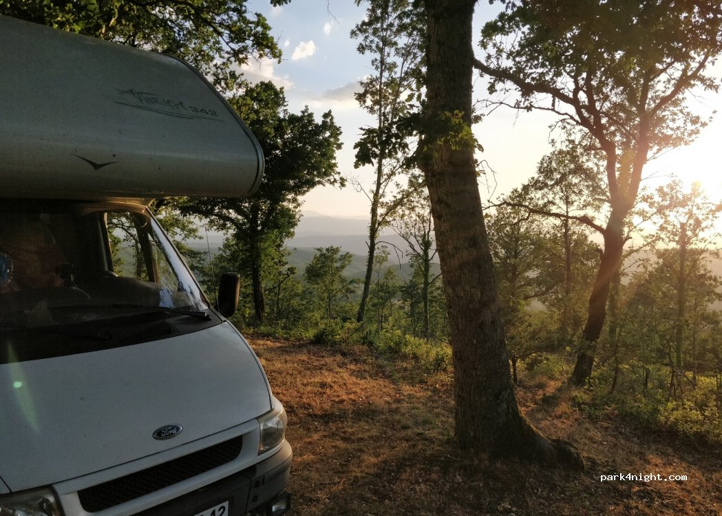 Excellent spot pour passer la nuit. Seuls au monde. Très belle vue sur les collines de l'Ombrie. Bien ranger sa nourriture, nous avons eu la visite d'un petit renard inoffensif en fin de repas ! Par contre, merci de bien prendre vos déchets et de respecter la nature, on a fait un nettoyage car il y avait un peu de papiers.