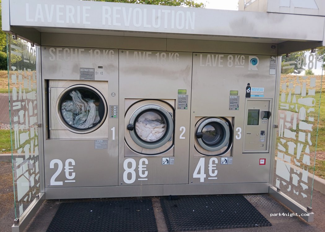 je confirme. nouvelle aire géré par campincarpark à 13 € la nuit. pas d ombre sur sol en gravier plat. emplacements délimités avec électricité. accessible avec la carte campingcarpark pouvant être acheté à la borne de l' entrée. a côté de la gendarmerie. sécurité. bien pour une nuit