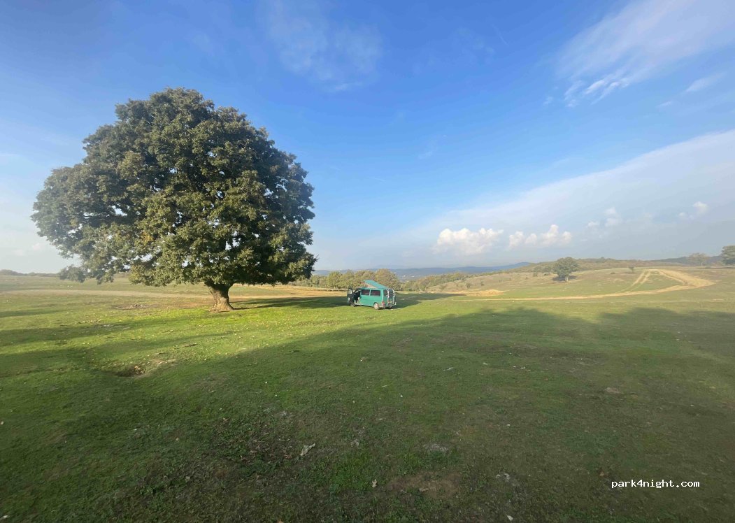 Super spot plutôt plat et vaste. Vous pouvez vraiment être seul si vous le souhaitez en continuant le long de different chemin. Chemin de terre accessible, attention aux trous et aux bosses. Jolie vue du haut des collines. Les gendarmes sont venus contrôler nos papiers, pas de problèmes pour rester là et ils étaient bien sympathiques.