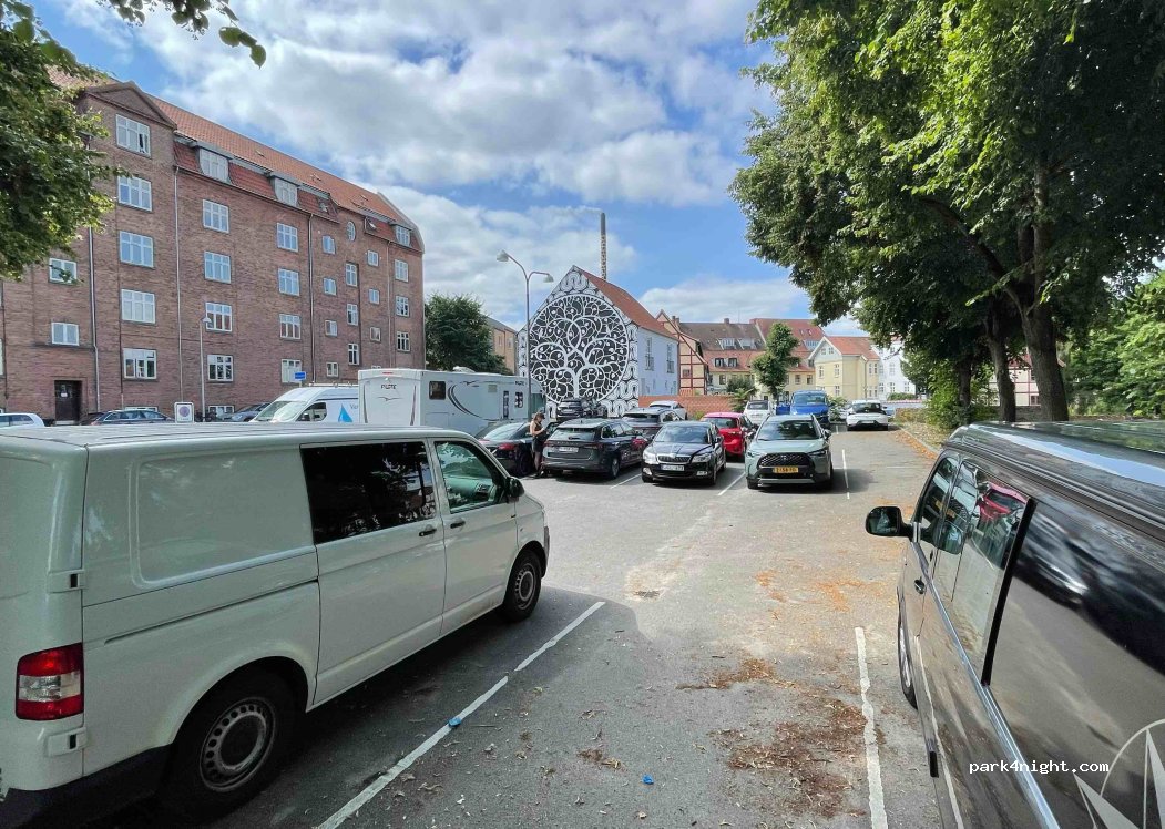 Aparcamiento de pago y vecino al centro.Es pequeño pero a la derecha se puede aparcar.Se puede dormir aunque ruidoso por ser zona de paso.Aparcamos el sábado según unos daneses fuera del horario de pago -el que está entre paréntesis-pero la máquina nos cobró 20 coronas al check out .nos dijeron que domingos gratis pero hoy hemos visto gente en la máquina,así que no sabemos si nos llegará un multa.