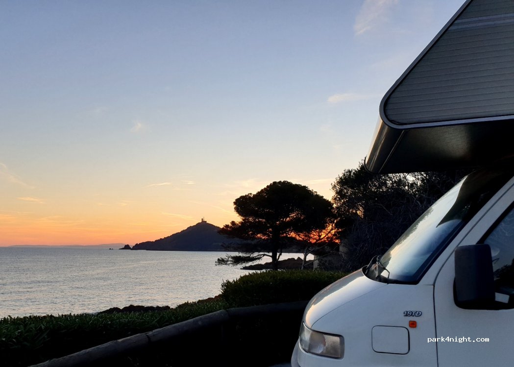 Nous y avons passé la nuit du réveillon. Il y a la place pour 3/4 vans ou fourgons pas trop longs (places pas très longues). Aucun service. Une vue à couper le souffle, lever et coucher de soleil magnifiques. Il est au bord de la route du littoral, beaucoup de passage toute la nuit, mais le bruit ne nous a pas dérangés. Il y a un terrain en contrebas devant les rochers.