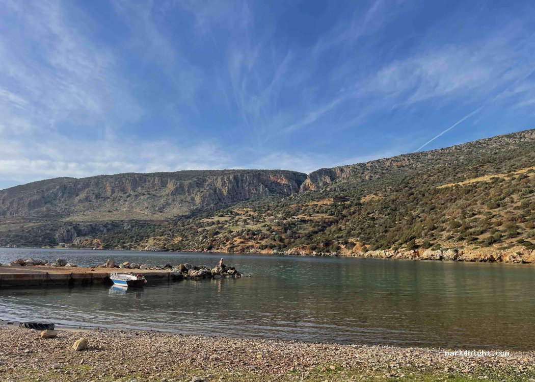 Sehr schöne Bucht und für griechische Verhältnisse relativ sauber. Allerdings so wahnsinnig viele Fliegen, dass haben wir noch nicht erlebt. Der Streuner vor Ort ist ganz lieb, bringt ihm Futter mit. Morgens kam eine Ziegenherde. Viele Angler und sogar im November waren noch zwei andere Camper da. Die umliegenden Häuser scheinen Ferienhäuser zu sein.