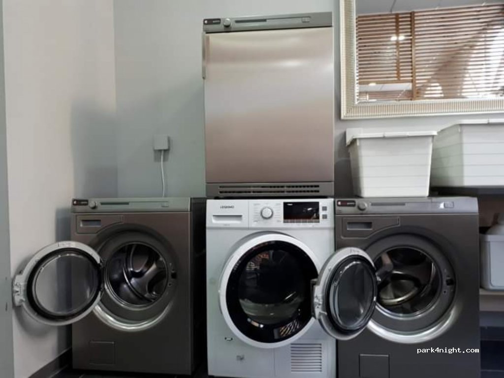 Used both the shower and the laundry. 3 euro for a big person, 1.50 for a child. The laundry was dry besides two big bedsheets that were almost dry, very slightly wet but for us it was not a problem as we dried them additionally in the camper. Took them quite a while (from 10 am til 18 pm).