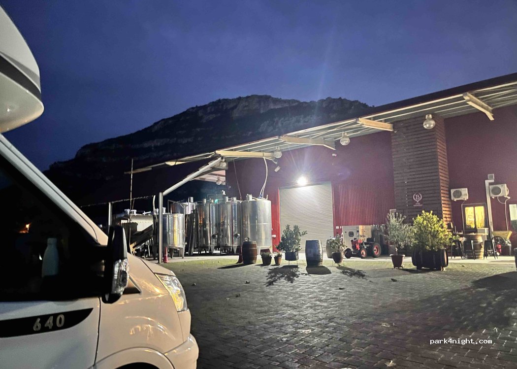 Een hele hartelijke ontvangst bij de wijnmakerij! We belden kort van tevoren en waren nog welkom. Rustige omgeving ( ‘s nachts wel wat honden geblaf). De mogelijkheid om eventueel elektriciteit te gebruiken en je toilet nog te legen. Ook leuk om een wijntje te drinken of een proeverij te doen! Is overigens niet verplicht. Locatie sluit om 18.00 uur (waarna je camper ook achter de poort staat)