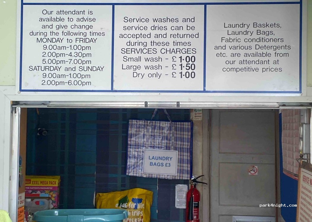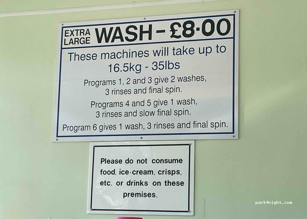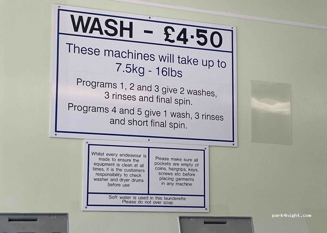 Large wash £8:00. 16.5 kgs Medium £4:50 7.5 kgs no change machine nice ckean fresh laundrette and lots of shops and chippy close by