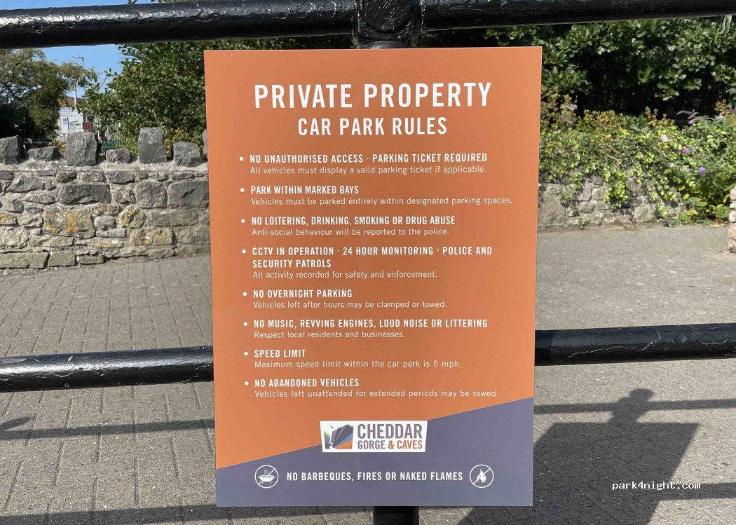 Stayed here overnight and walked the Cheddar Gorge hike in the morning before the crowds arrived. Great spot in the corner by the pond, very quiet apart from the noise of the water. And had an excellent Thai dinner in the restaurant across the road! £6 flat rate from 9 a.m. to 9 p.m. Free from 9 p.m. to 9 a.m.