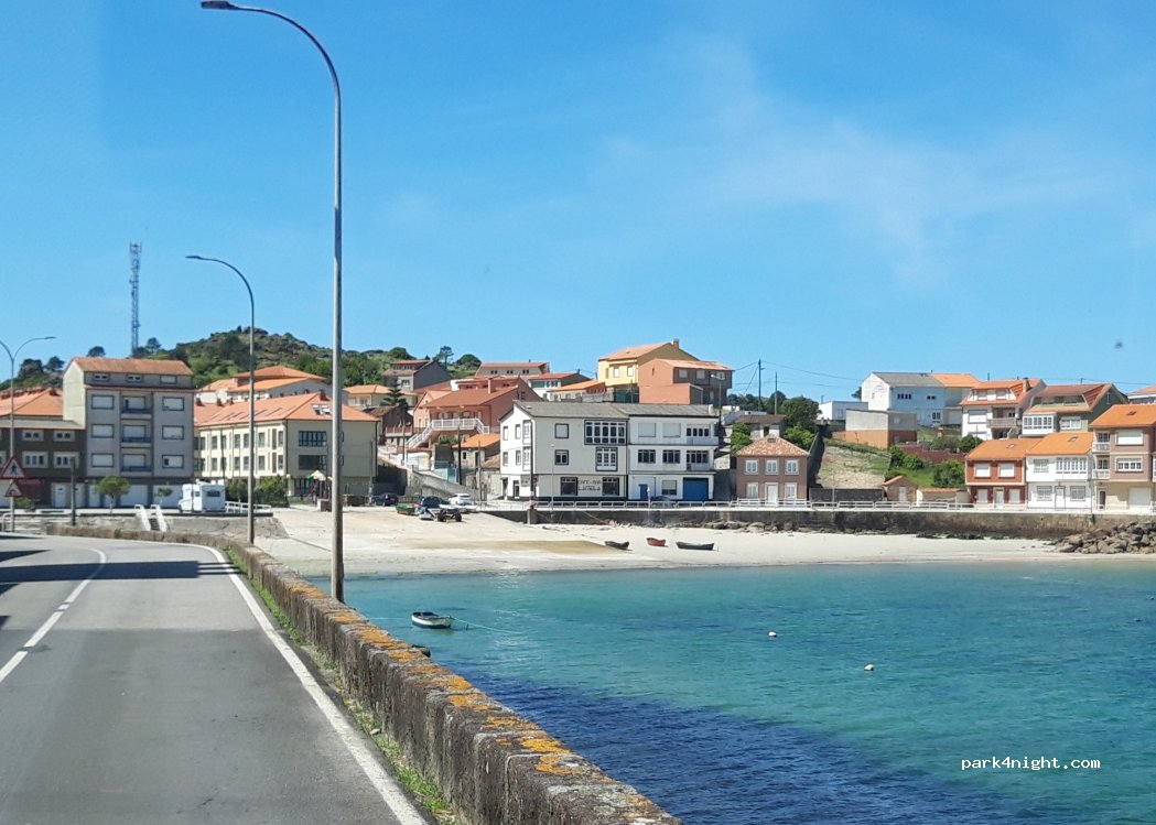 We parked our 7 meters motorhome there for went to the nearby beaches overlooking to the parking and the city port. There aren't any services except few garbage bins but near there is a playground and a bar. For sleep we preferred to go to the Ézaro waterfall parking because we felt too noisy the near road, but it is probably possible to sleep also in this spot.