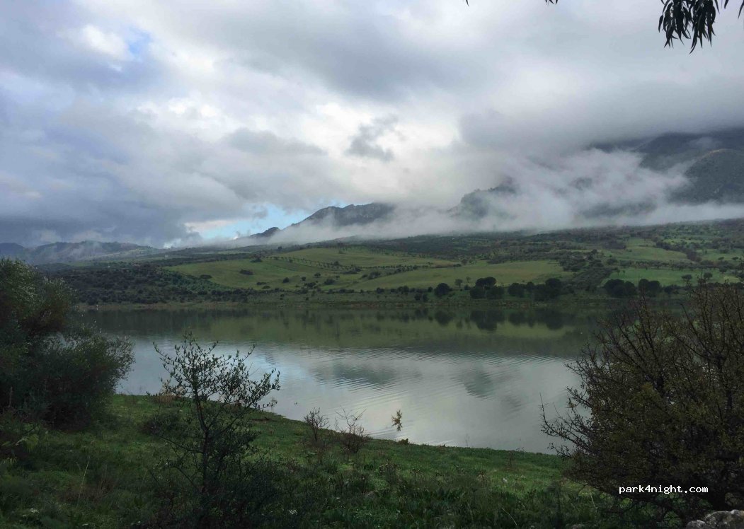 Accès par les rues de Caccamo, certaines très étroites, puis 50m de chemin pour arriver au spot. Petit emplacement au bord du chemin pour 2 véhicules maximum avec vue sur le lac. Nuit très calme, quelques passages a partir de 9h du matin, et coups de feu de chasseur de l'autre côté du lac. Plutôt propre. Nous avons passé une très bonne nuit.