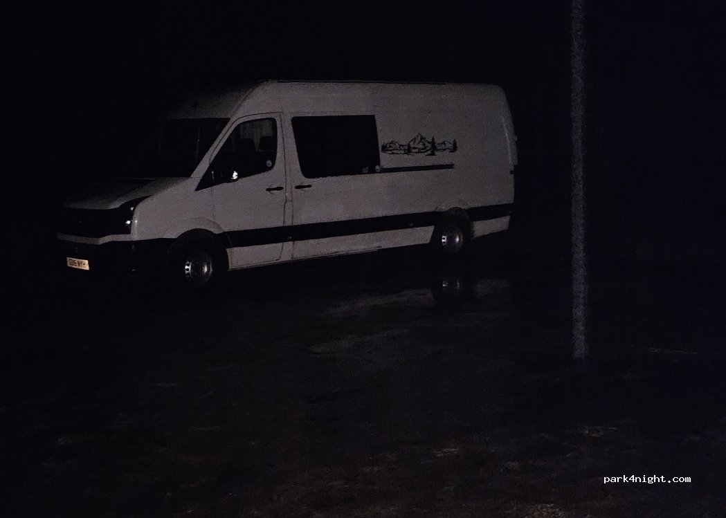 C'est effectivement un parking privé, mais pour 5 livres la nuit, ça vaut le coup. Endroit très calme, plat. Pour les mordus d'internet, il n'y a pas de réseau, mais ça fait du bien. Il y a un petit kiosque, où on peut payer dans la journée, sinon, il y a une boîte. Il est possible d'y faire une petite restauration, à  partir de 10h.