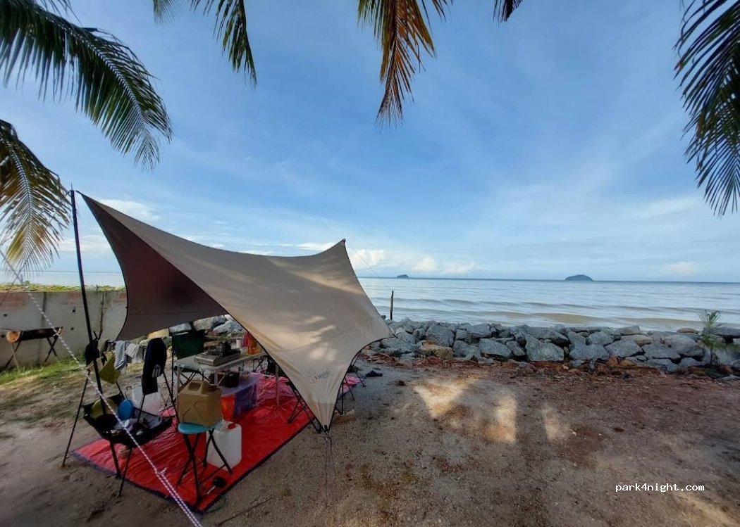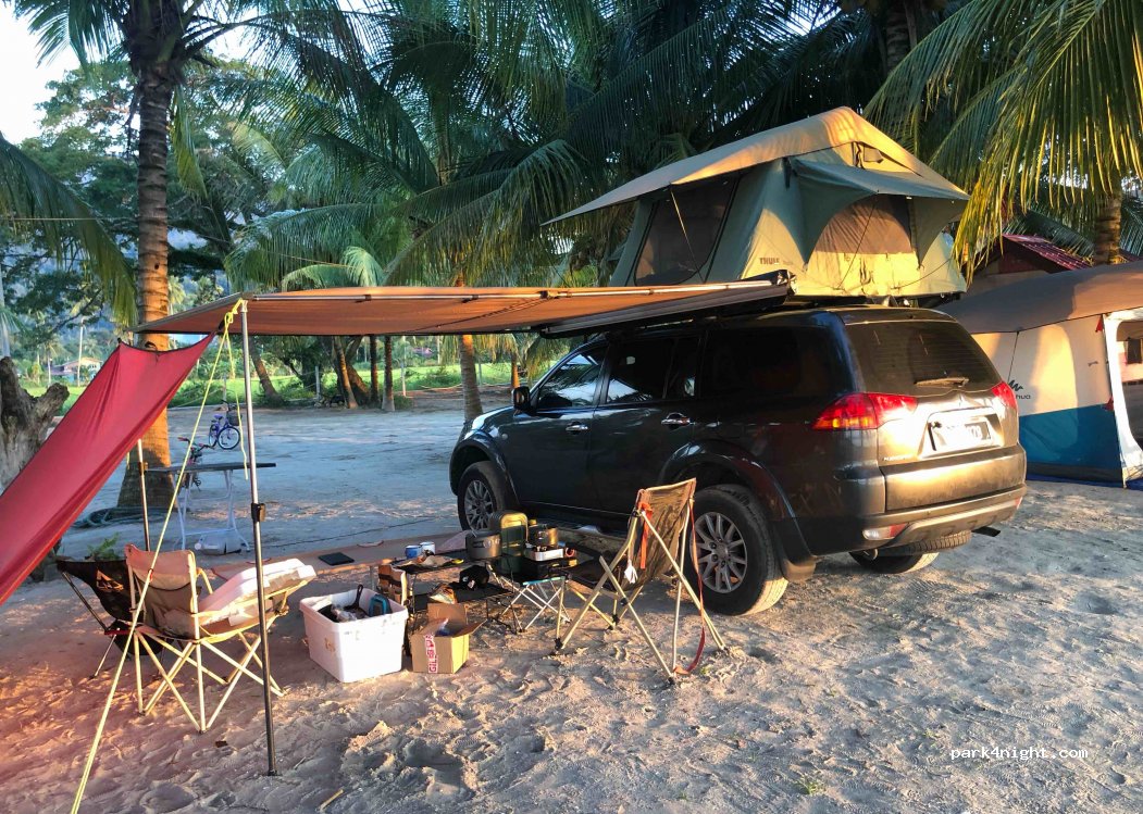 Vue sur la plage de Ruat, la rizière et le mont Jerai