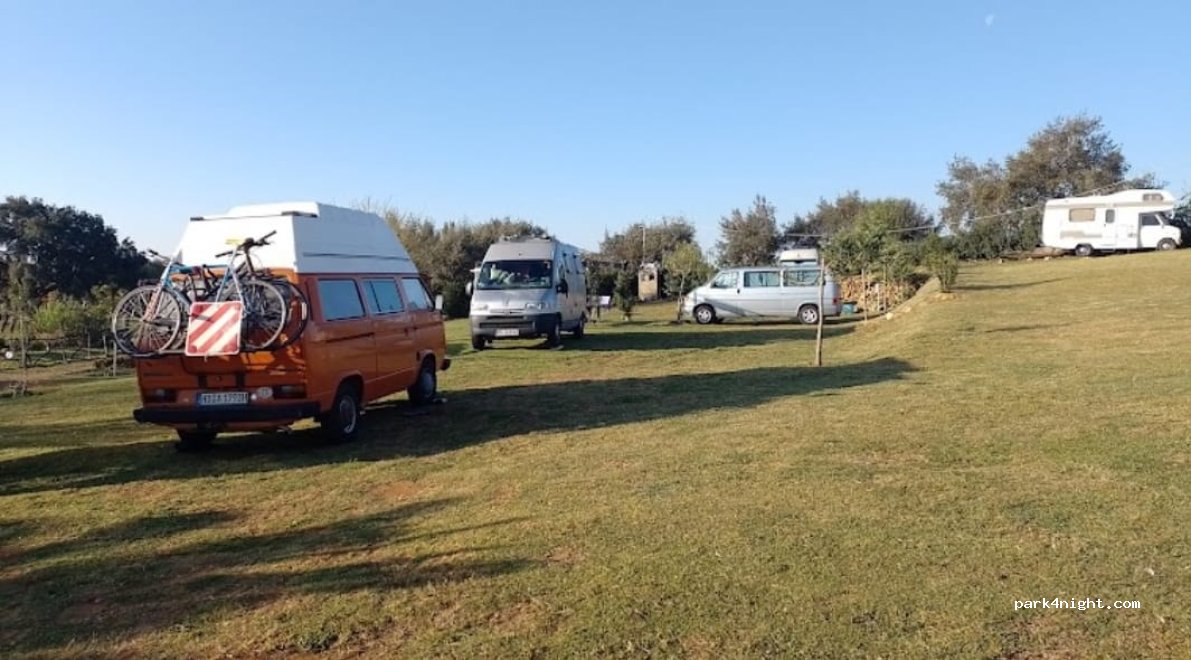 Guter Platz, man steht quasi mitten in einem kleinen Bauernhof mit vielen freilaufenden Tieren. Es ist sehr Idyllisch. Morgens habe ich Trauben geschenkt bekommen. Dusche und WC sind ok, Duschwasser war kalt. WLAN funktioniert tlw. nicht so gut. Man kann das hauseigene Olivenöl kosten (1L Öl für 17€).