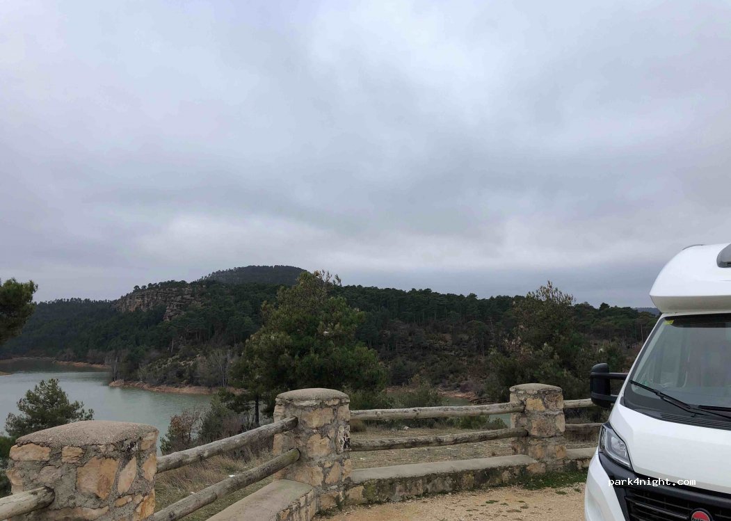El mirador del embálse, al lado de la carretera que no está muy transitada , hemos parado a comer y no a dormir. Casi nivelado y unas vistas fantásticas .