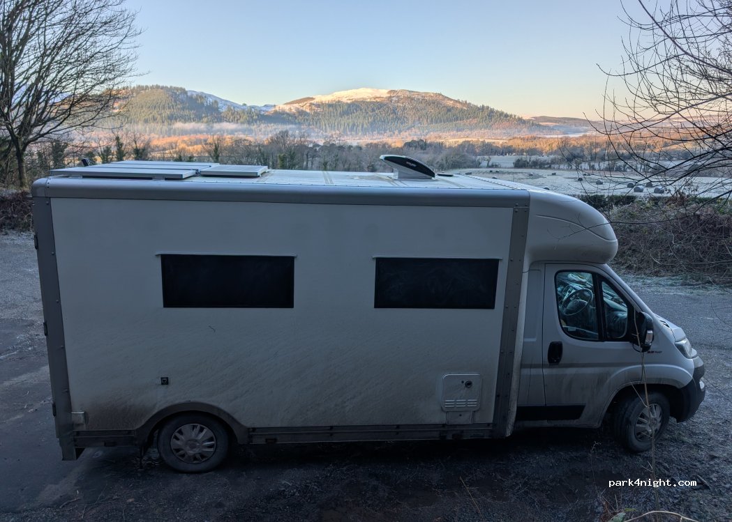 Little lay-by that’s just off main road so not noisy at night. Fairly level. Space to fit 3-5 cars/vans. Cars turned up in the morning to go for walks. We went up skiddaw from here.
