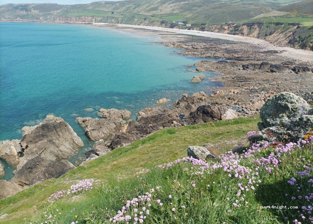 Parking au milieu de nul part, sans lumière la nuit. Relativement plat pour celui en partie basse. Aucun service, ni commerce. Une poubelle toutefois. Mais quel magnifique bord de mer. On se croirait en Irlande. Dépaysement garanti si on marche sur le sentier côtier. Respecter les riverains pour préserver l'accès. Endroit à préserver.