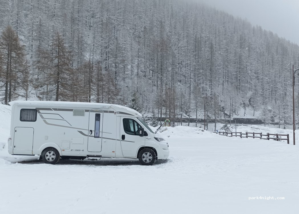 Parcheggio panoramico e pianeggiante nei pressi del Lago di Ceresole, con accesso gratuito per tutti i veicoli in bassa stagione da novembre ad aprile. libero è molto tranquillo. c'è una lettiera, servizi igienici pubblici e nelle vicinanze un rifugio aperto solo la domenica.