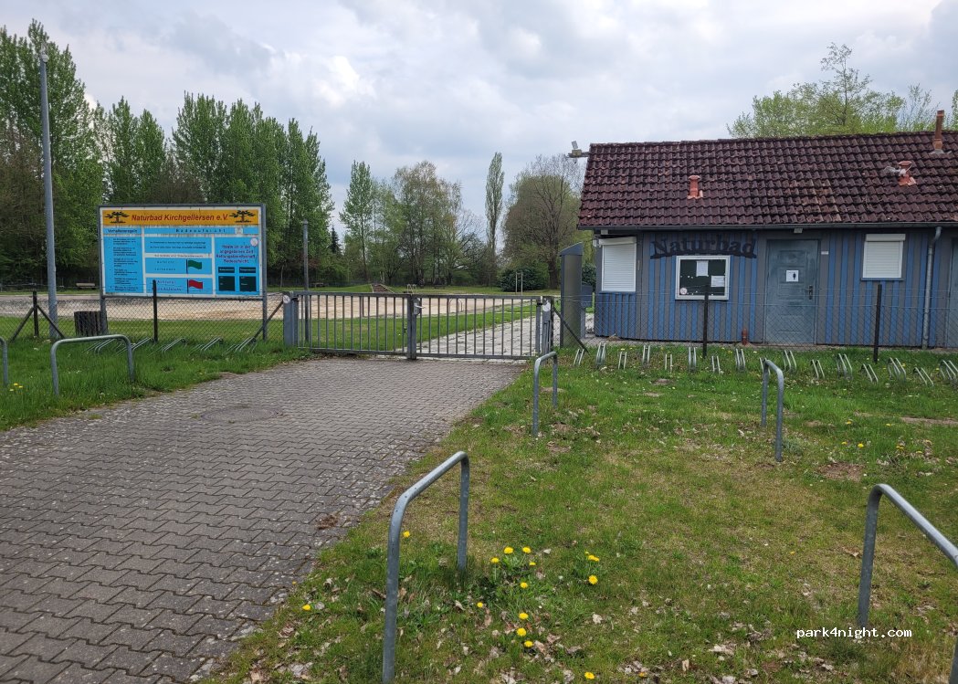 Direkt am Naturbad Kirchgellersen - Eintritt 2,00€ , warme Dusche 0,50€/10 Minuten - danach wird es nur noch kalt.