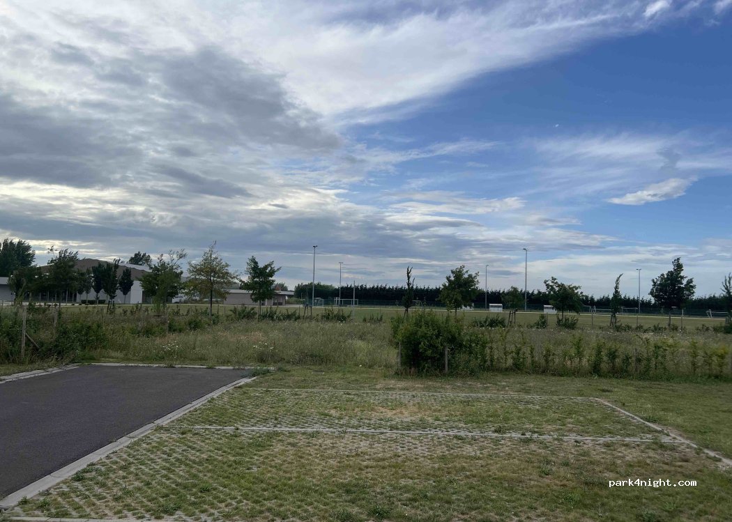 6.6.23 Großer Stellplatz, nachts sehr ruhig. Preis mit Strom 18€. Rasen und Gitterbeton. Auch gut für große Fahrzeuge. Zugang kontaktlos zu jeder Tageszeit möglich. Zahlung entweder mit Kreditkarte am Automaten oder Buchung über Internet. Man erhält einen Strichcode, an der Schranke ist ein Lesegerät (code hin und her bewegen, dauert einen Moment bis es reagiert). Sanitär haben wir nicht genutzt.