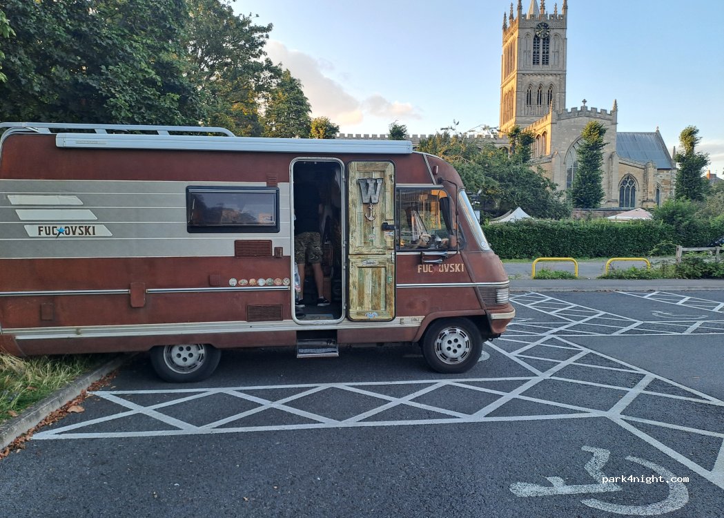 Aparcamiento céntrico. Sin cargo de 18:00 a 07:30 pero luego tarifa por hora. Algunas de las bahías tienen un saliente de césped en la parte trasera, por lo que es posible estacionar en ruedas largas, etc. frente a las oficinas del ayuntamiento, a 1 minuto andando de la estación de tren. Comida china para llevar al lado del estacionamiento. Muchos pubs y restaurantes en el centro de la ciudad. Al lado de un gran parque tranquilo. Pasé la noche muy tranquilo parecía seguro