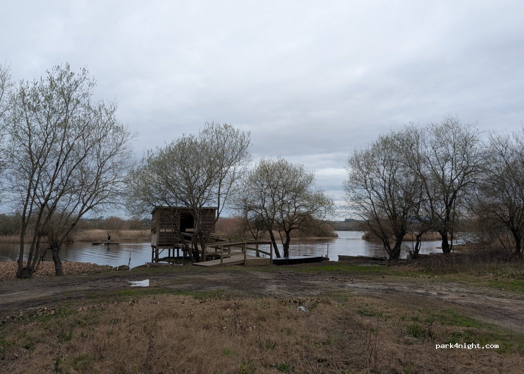 Super sport au bord d'un magnifique lac. Cabane d'observation, cigognes qui viennent tous les jours, et des nuits calmes. Pas mal de passage des locaux qui viennent voir les oiseaux et leurs barques, mais qui sont très sympas. Nous y sommes restés 2 nuits. Aucun service, mais du réseau. Première nuit seuls, la 2ème nous étions 3 vans, sans se gêner