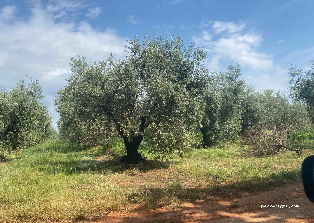 Quelques places sur un parking gravillonné, au calme et proche de la mer. Il y avait un autre campeur là-bas. Quelques marcheurs et cyclistes, sinon calme. À environ 20 minutes à pied du port de plaisance, où se trouvent des restaurants, un supermarché et une boulangerie. Dans le prolongement du chemin vers l'oliveraie il reste encore quelques places, mais le chemin devient du savon mou quand il pleut