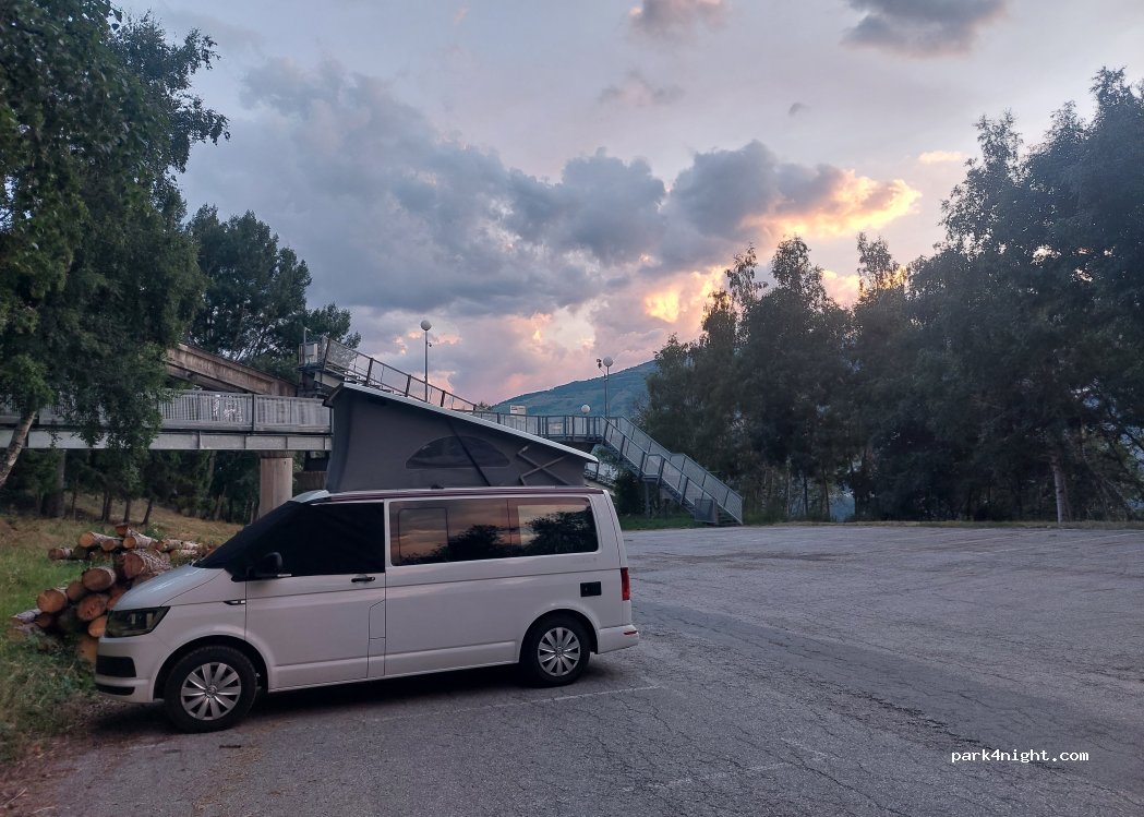 Free parking at Les Granges funicular stop. Flat only for two motorhomes. Free and non disturbing. No services. Direct access to Les Arcs ski resort, just check timetable for stops at Les Granges and don't forget to push the request button as in a lift! Back from ski day by red slope or on the funi.