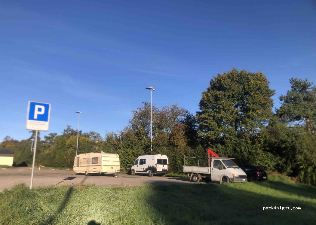 Tarmac parking for 5 vehicles. It is flat and free. Official parking, NO services. Near the sports complex/school.