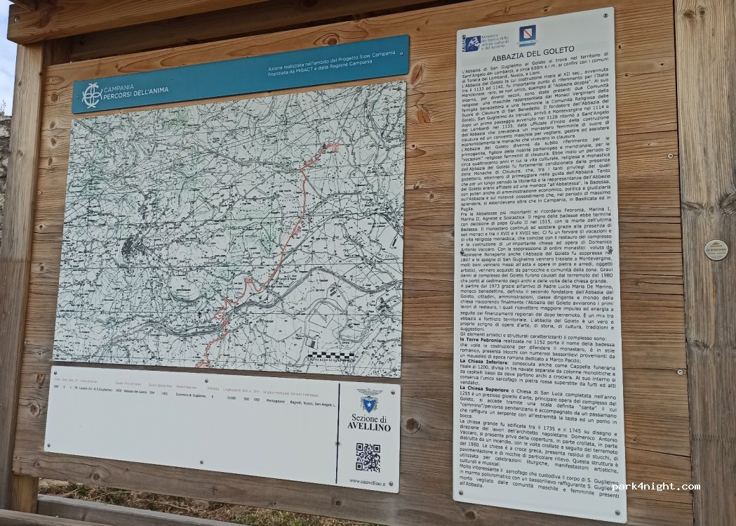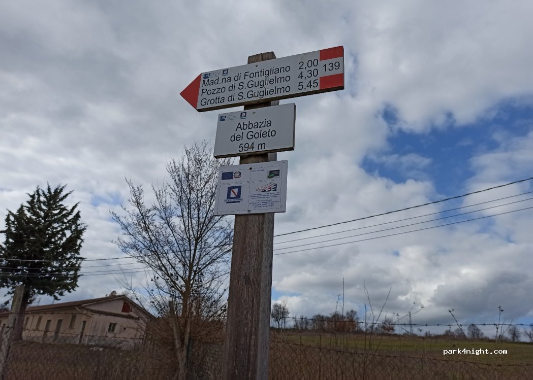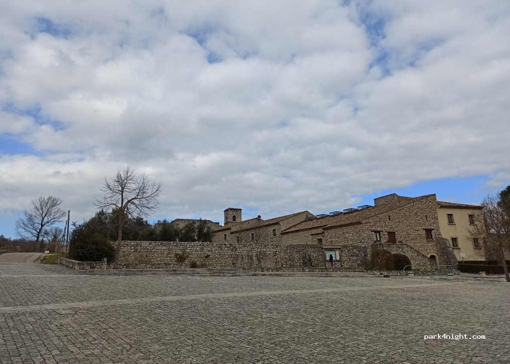 Parking for visiting the Goleto abbey and starting point for an excursion on foot to the Picentini Mountains. We did not stop at night. no services (inside the abbey there are public toilets)