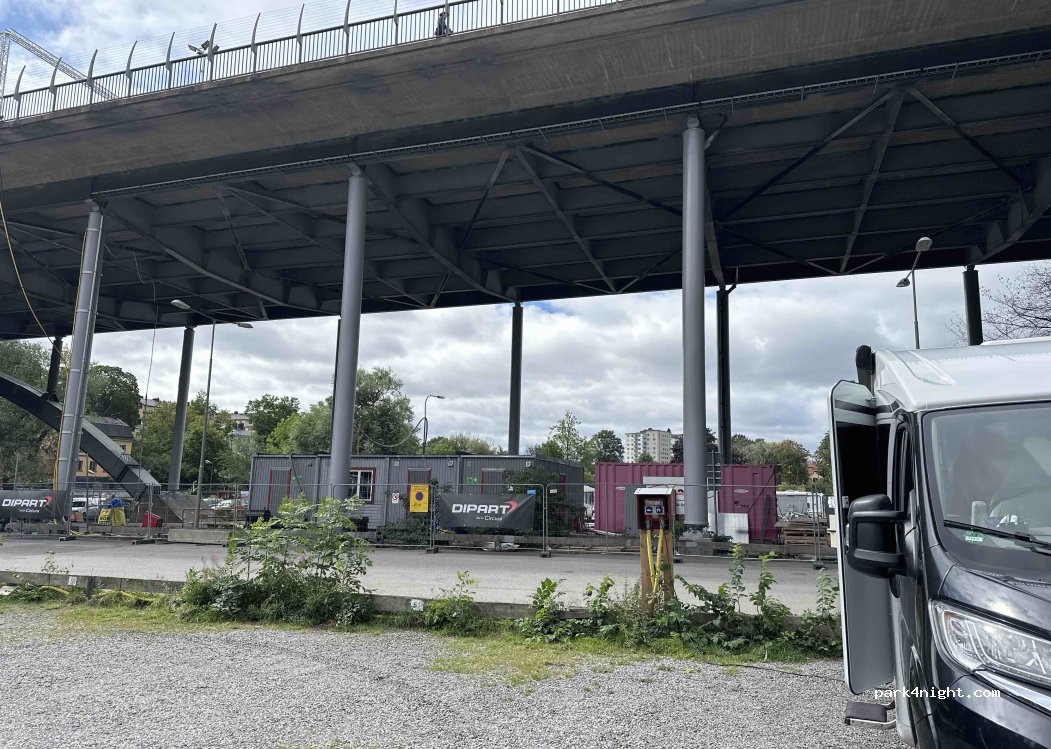 Bon emplacement pour visiter la ville. Gamla Stan est à environ 4km avec une piste cyclable. Les sanitaires sont propres, on peut faire tous les services. Les emplacements sont sous un pont routier, mais on a pas trop mal dormi.