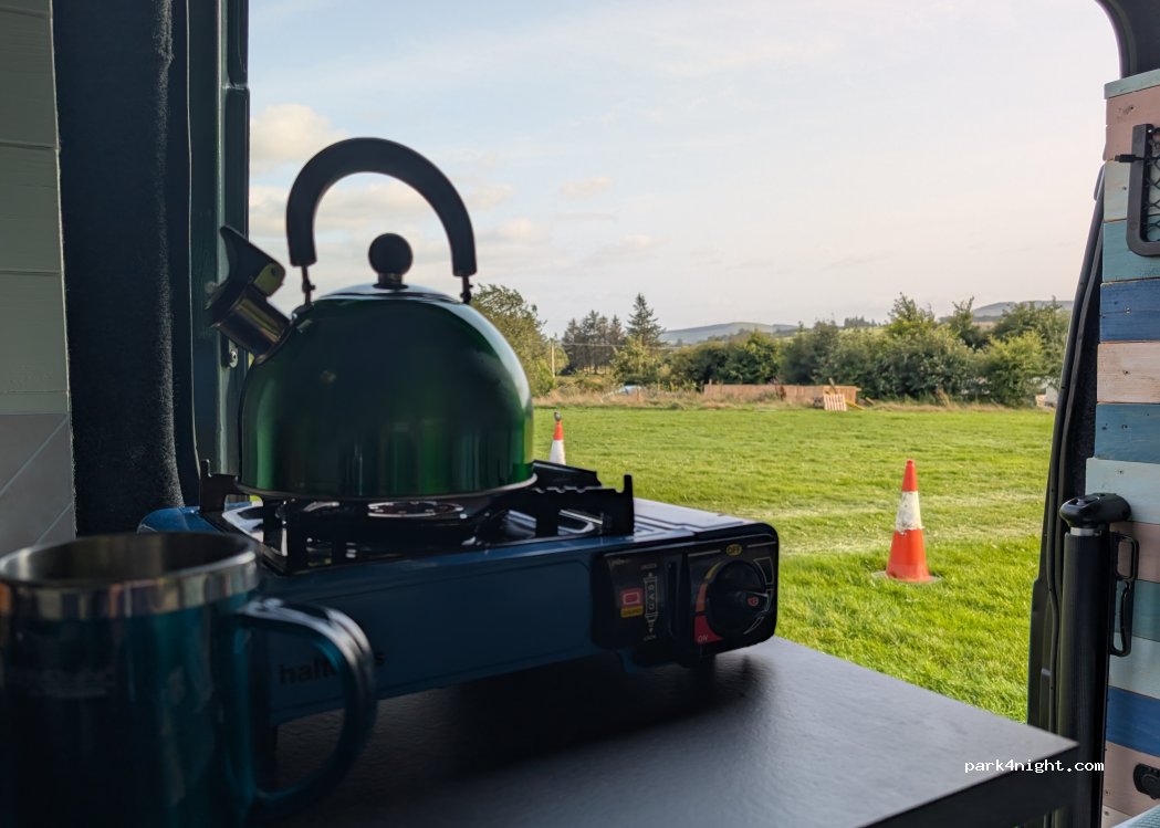 Super nice hosts and pretty campsite. Free opportunity to cook and use kitchen and showers. 20£ for 2. Although it was booked out, they squeezed us in on a nice spot. No walking trails in reach without driving, but its an Ireland Issue i guess.