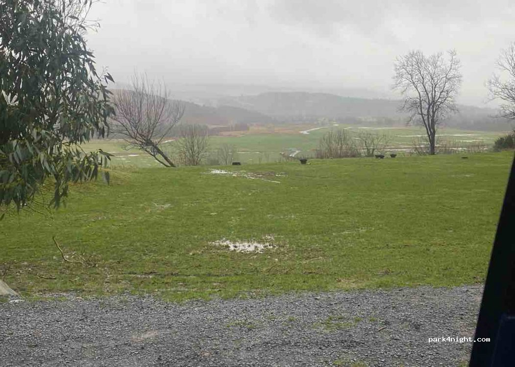 Ferme côté mousse ~ ! Une ferme en activité, avec de petites cabanes de train et des emplacements de camping-car. Foyers fournis. Chiens de travail sur place, alors gardez vos propres chiens en laisse en tout temps. Toilettes propres, douches propres, vues brillantes et très calme. Ouvert toute l'année. Propriétaires très sympathiques.