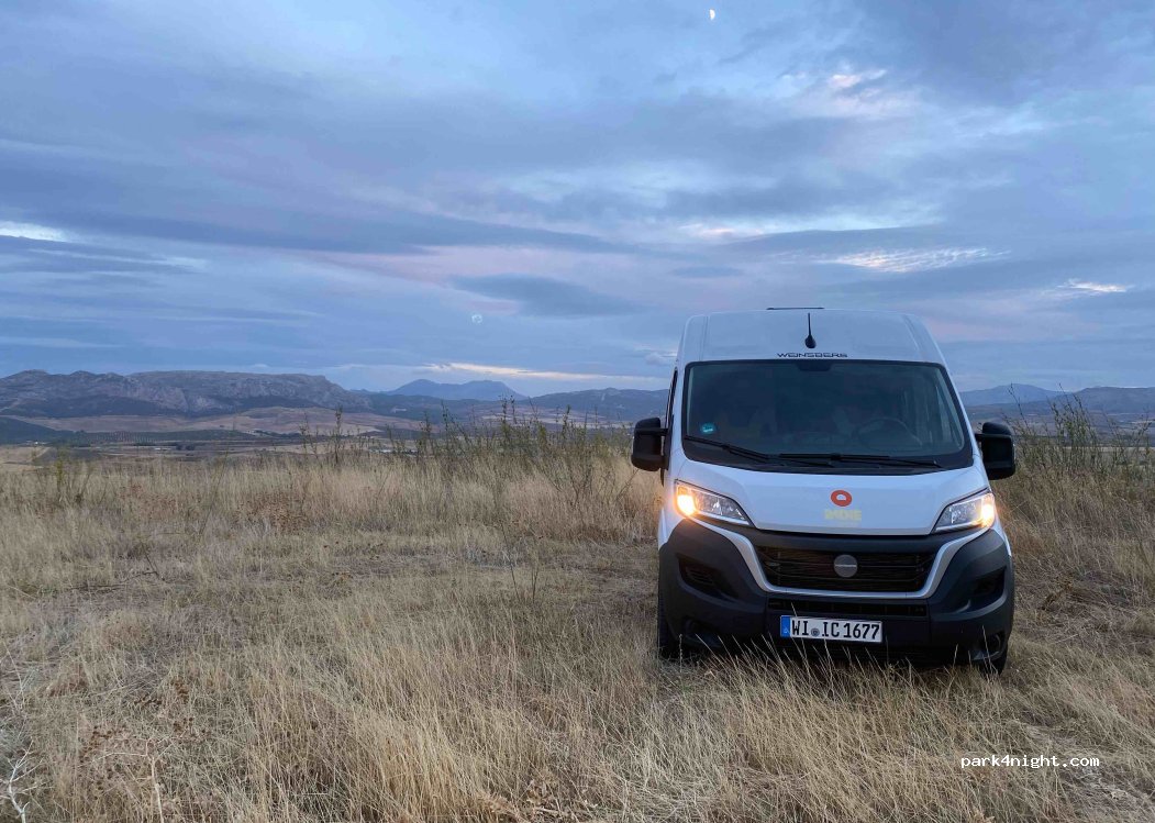 Kleine Ecke des Paradieses, am Ausgang des Dorfes Cañete le Real neben der Nebenstraße. Herrlicher Blick auf das Tal und die umliegenden Berge, man fühlt sich wie allein auf der Welt. Wenige vorbeifahrende Autos. Kein Dorfbewohner kam, um sich über unsere Anwesenheit zu beschweren. Ideal, um die Nacht zu verbringen, bevor Sie Ihre Schuhe auf den Stegen des Caminito del Rey tragen!