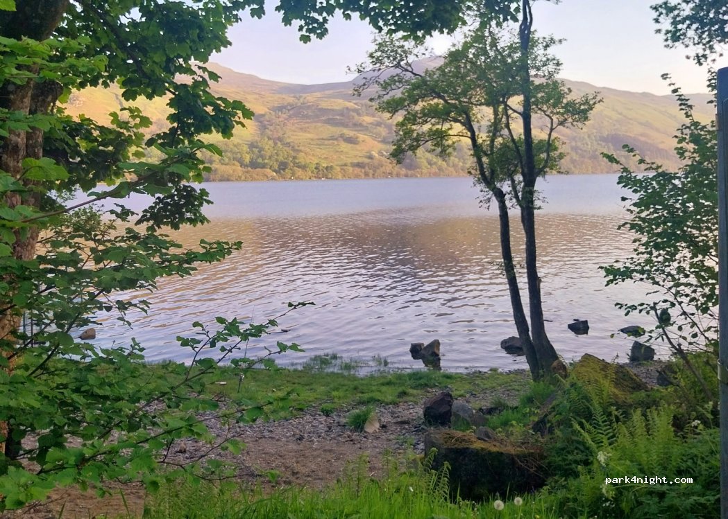 Great views beside Loch Earn. Lots of room. Nice distance from the road so not too noisy. Pretty busy with 4 other motorhomes / caravans using that night.