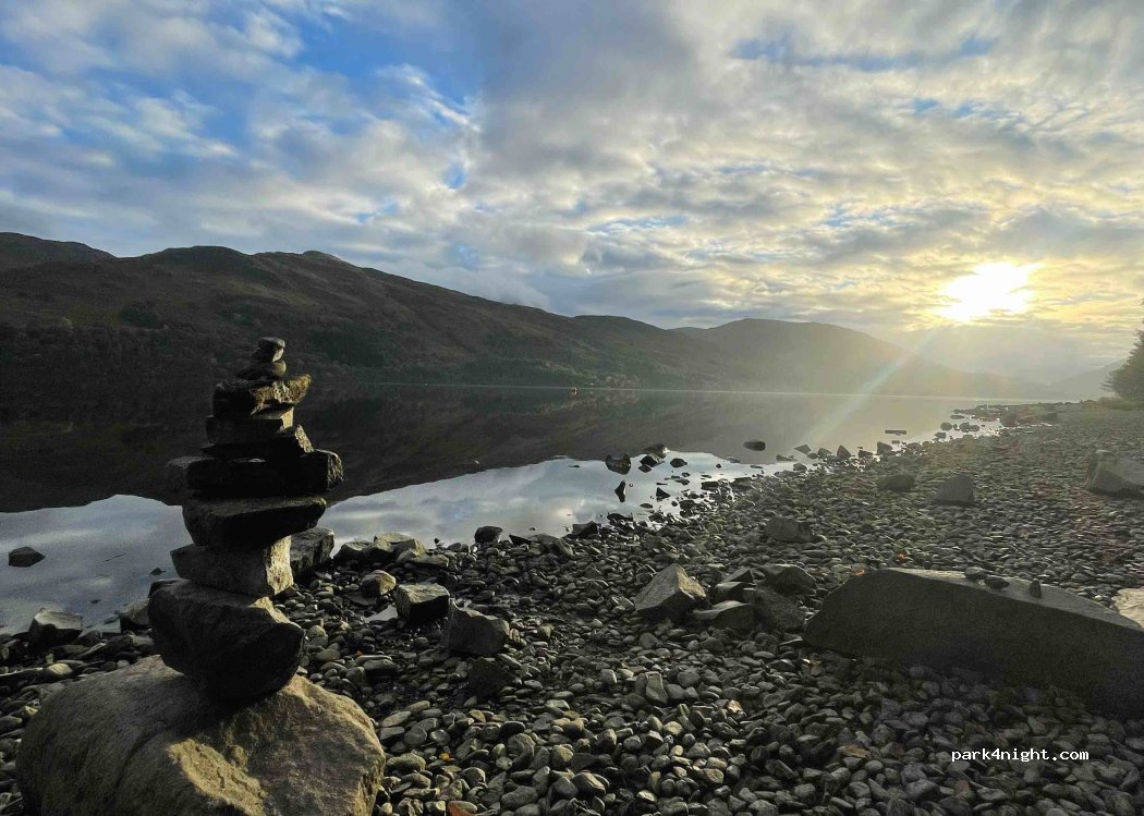 C'est un bon endroit où séjourner, vous avez droit à 2 nuits de stationnement gratuit et vous êtes juste à côté du loch avec de belles vues, vous pouvez vous promener dans un petit village pour une bière ou un café et ils vendent du pain, etc. De nombreux camping-cars et camping-cars l'utilisent. Veuillez noter qu'un permis obtenu à l'avance est requis pour les arrêts de nuit dans le parc national du Loch Lomond et des Trossachs. Ils peuvent être obtenus en ligne. Notez également que si vous vous garez et essayez d'obtenir un permis en ligne le jour où il ne vous laissera pas. Il y a beaucoup de poubelles, il n'y a donc aucune excuse pour les déchets de quelque nature que ce soit.