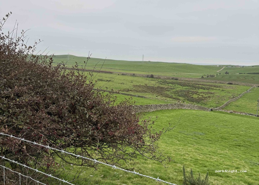 Big layby far enough away from the road. It isn't sheltered by trees in winter, as the trees are bare! Nice and quiet overnight with the road getting busy from around 7am. Wonderful views, which was my main reason for choosing this spot. 4G signal on giffgaff.