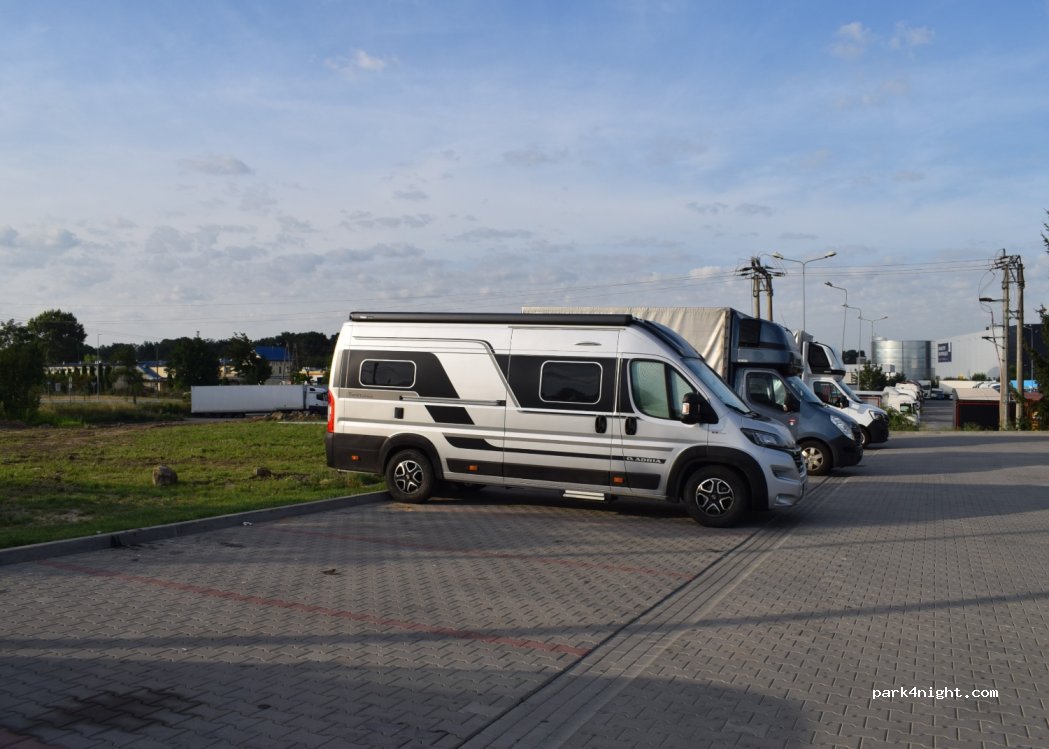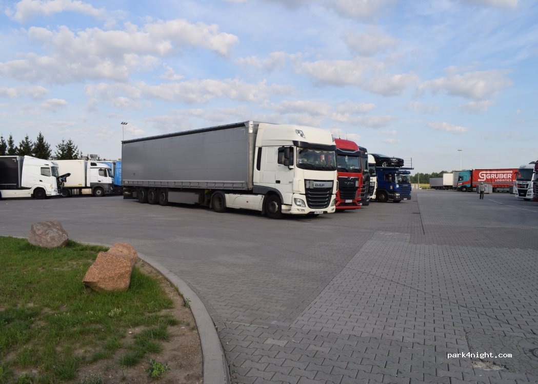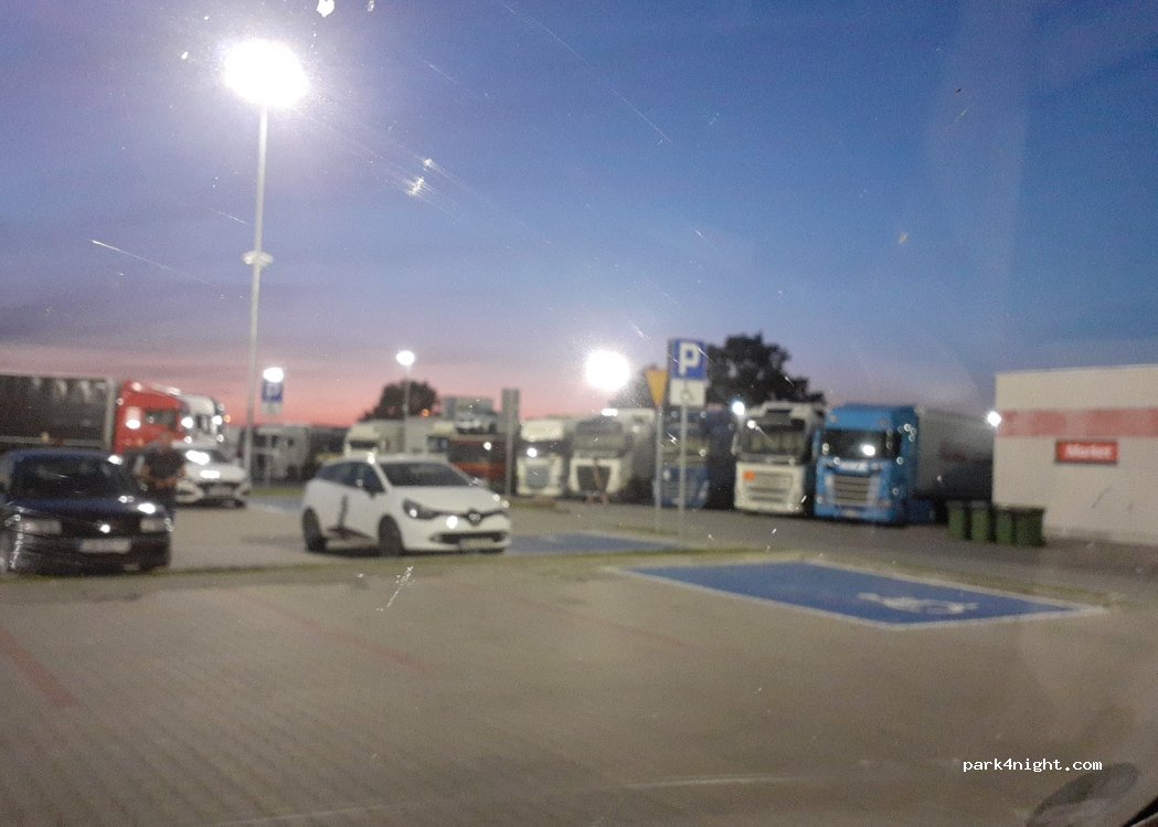 Non è certamente un luogo idilliaco, ma va bene anche così perché si trova vicino all' autostrada. È pieno di tir, ma i veicoli come i camper parcheggiano davanti al market. C'è anche un bar, dove si paga, il ristorante e la stazione di servizio. Non è silenziosissimo, ma si riesce comunque a dormire. Per un van costa 20 zloty, e ti danno un buono di 10 zloty da spendere nel bar.
