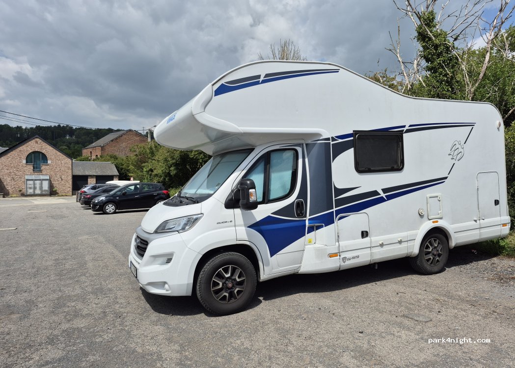 Parking gratuit en centre ville. Boulangerie 180m, déchetterie 50m. Lieu de gravier, complètement plat. Très bien pour 1 nuit.