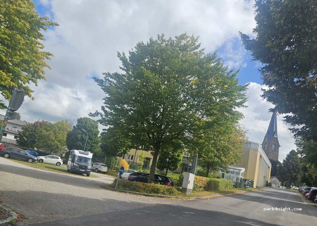 Stayed for 1N. Very quiet apart from the church bell that never stops! Flat, spaces around the outside which allow for a longer vehicle. (6.5m). Parking 3 of the town. Toilets in the centre behind the town hall.. about 5 minute walk. No facilities. Maybe busy during the week as part of kindergarten but we were only vehicle at the weekend.