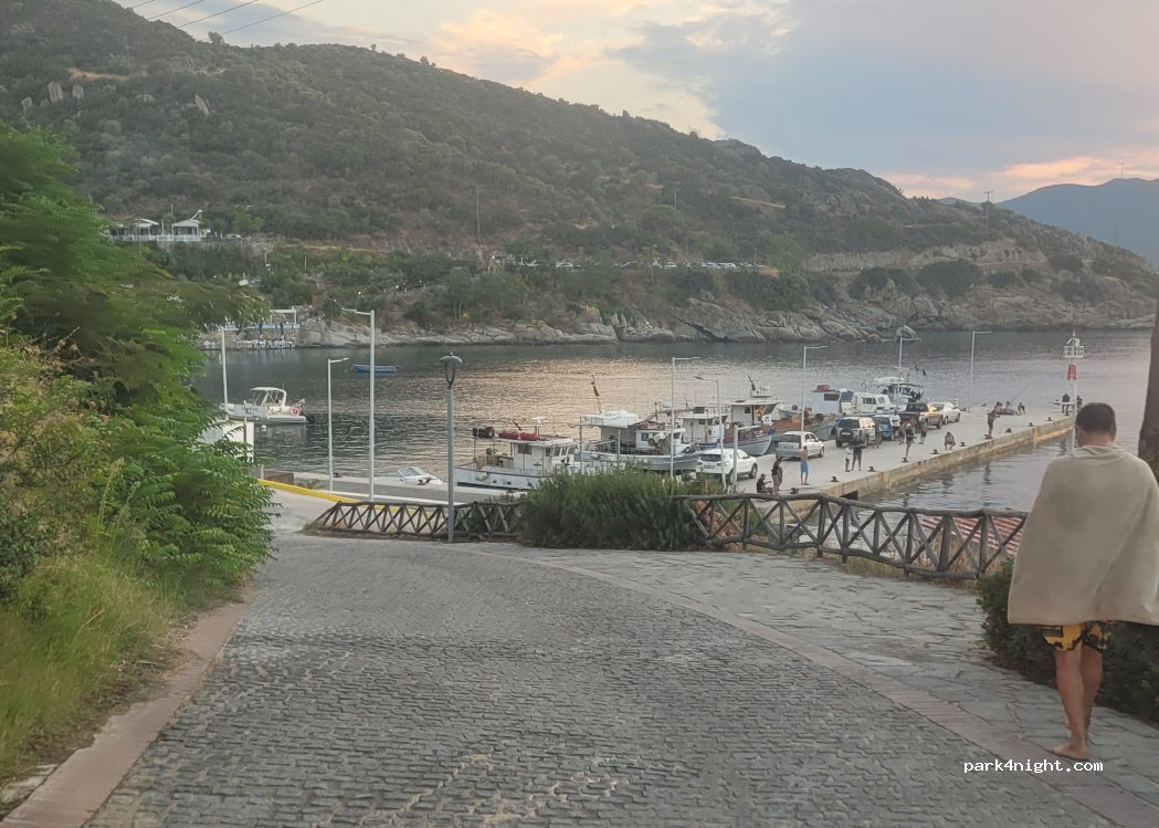Très agréable spot pour vans, la route d'accès est par endroits très étroite et pentue. Très calme la nuit, les pêcheurs semblent absents, c'est lundi. Pour voir le mont Athos il faut remonter la route. Pas de services