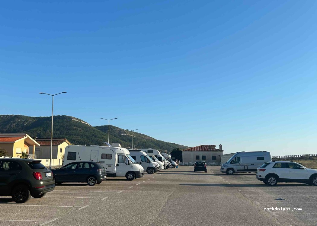 Abbiamo passato la notte qui con macchina camperizzata. Posto molto tranquillo, illuminato la notte ma non fastidioso se si hanno oscuranti. La notte zero casino, si dorme con il rumore del mare. Tramonto mozzafiato. Bagni, due docce esterne e una interna con acqua fredda disponibili h 24 gratuitamente + 2 docce sul mare. Bar/ristorante e supermercati nelle vicinanze. Consigliamo vivamente.