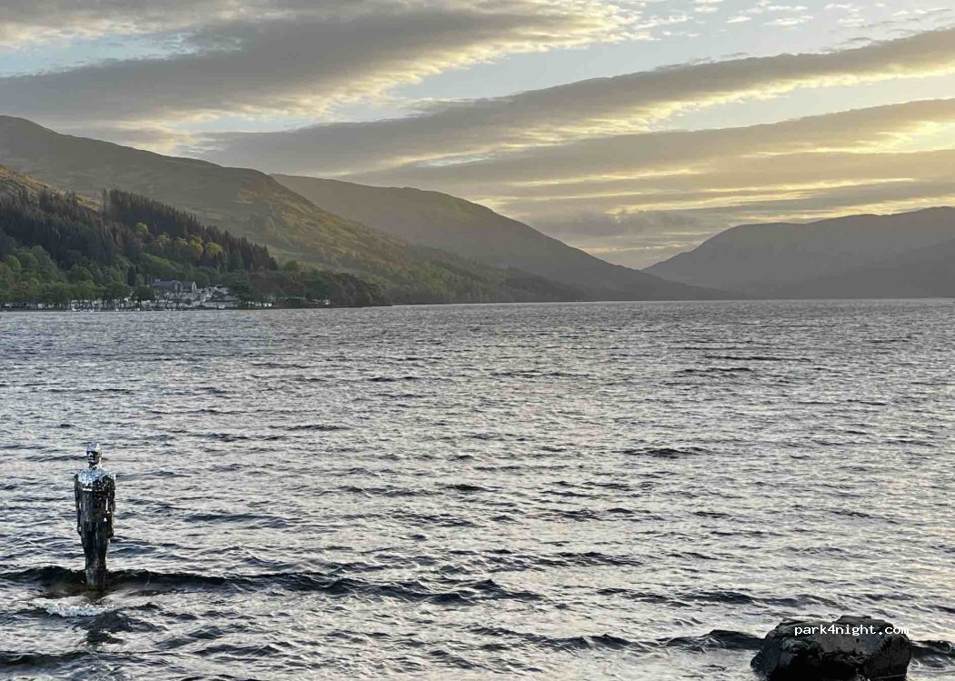 Grande aire de stationnement juste à la périphérie du village sur les rives du loch, belles perspectives. Pas de restrictions de stationnement ou de hauteur. Toilettes publiques à quelques pas. Les hôtels Four Season et Achray House sont très proches, tous deux proposant une bonne cuisine. Le magasin du village est plus loin dans la ville et propose d'excellents petits pains fourrés et du thé ou du café. Quelques excellentes promenades dans ce domaine. Un peu de bruit de la route le matin mais nous n'avons jamais trouvé que c'était vraiment un problème. Beaucoup de canards et d'oies aussi, ils font plus de bruit que la circulation !