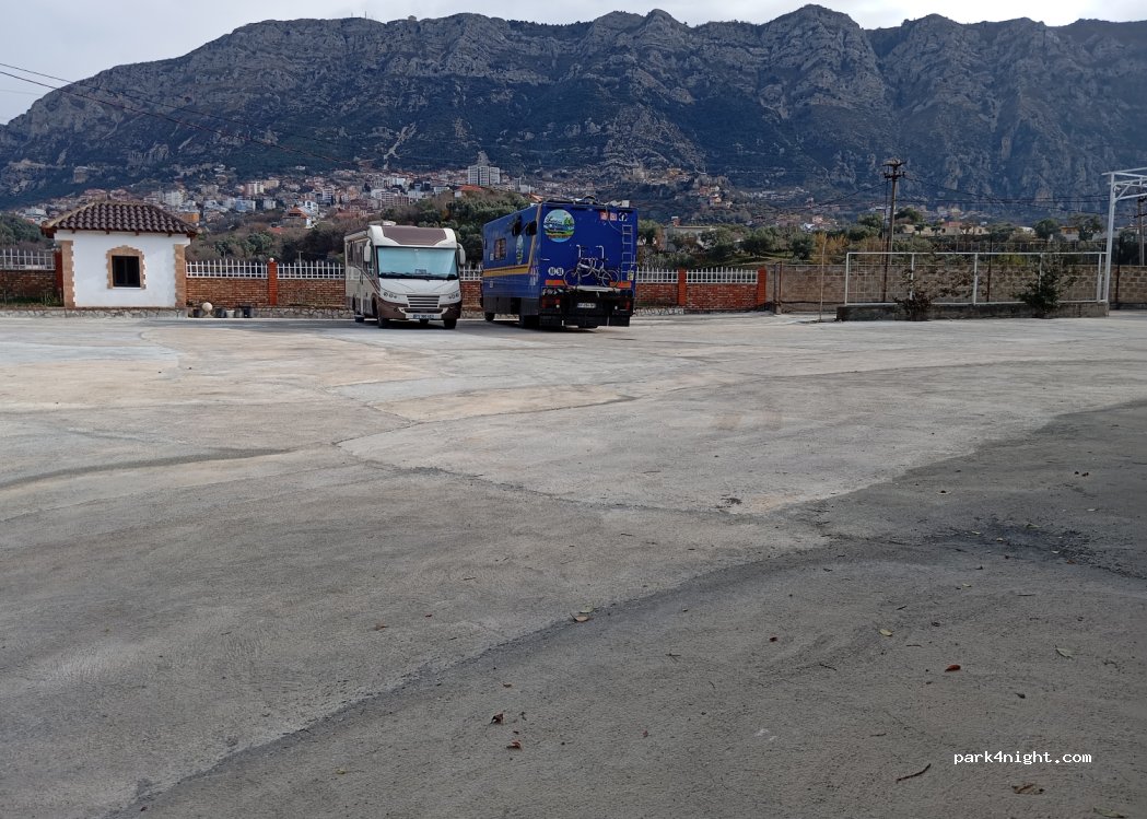 Ne pouvant accéder au autres campings nous sommes entrés dans ce parking. C'est propre, bien entretenu et une grande place. C'est un bon endroit pour visiter Kruje. Bus A/R juste à la barrière pour 2 euro A/R pour 2. Il n'y a pas de douche. Nous n'avons pas été au restaurant. Je recommande cet endroit pour visiter Kruje. Prix correct et sécurité. Cae la nuit.