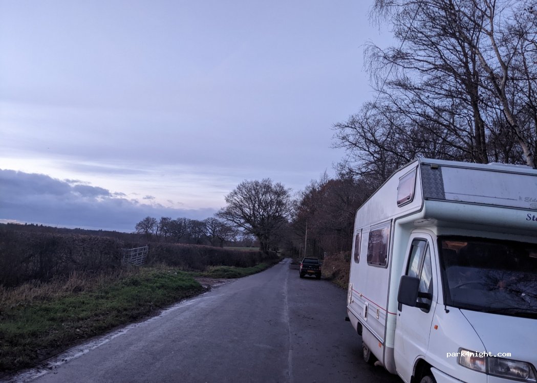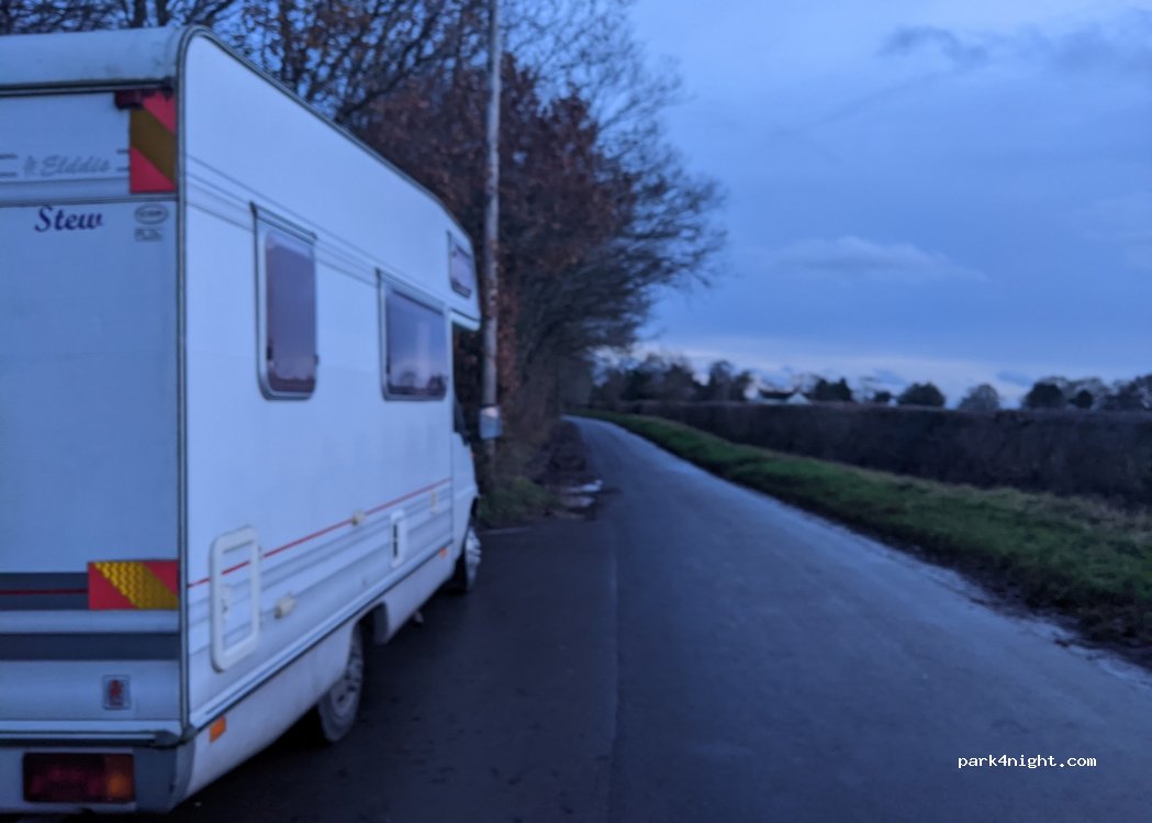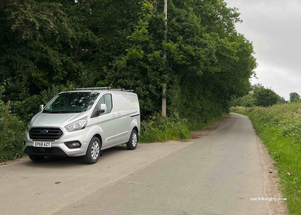Au bord d'une route de campagne très peu fréquentée, près d'un bois, il y a de la place pour se garer, nous étions 3 véhicules de toute taille ce soir ĺà et il restait de la place. La route d'accès est en très bon état, lisse, un peu étroite de temps en temps. Calme. Situation géographique juste avant Birmingham très pratique.