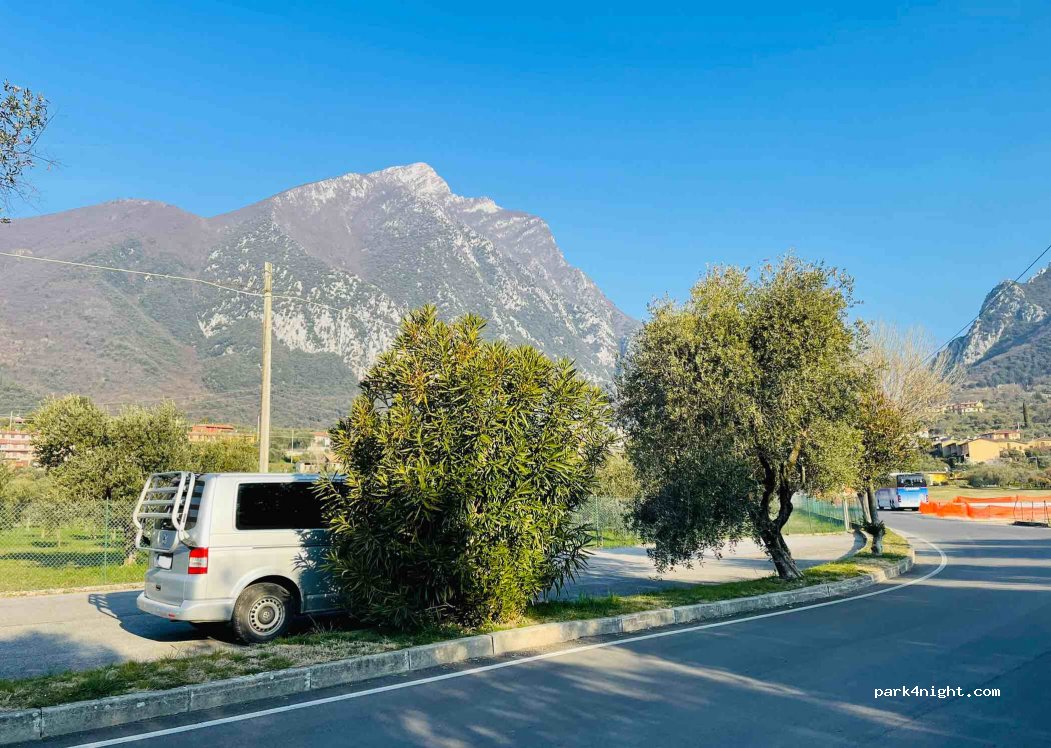 Parking facile à côté de l'oliveraie. Est un peu séparé de la route par une bande verte avec des oliviers. Facile à trouver grâce au conteneur jaune. Une minute à pied de l'église avec une vue incroyable. Une alternative à la prairie entre-temps fermée d'à côté.
